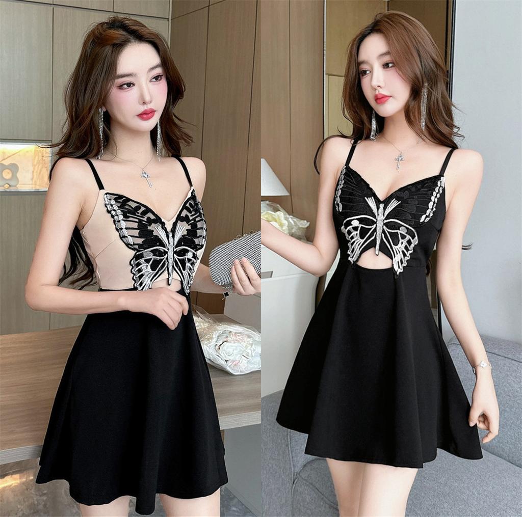 Sexy Butterfly Lace Splicing Hollow Suspender Big Pendulum Nightclub Work Work Clothes Show Figure Spice Girl Waist Dress