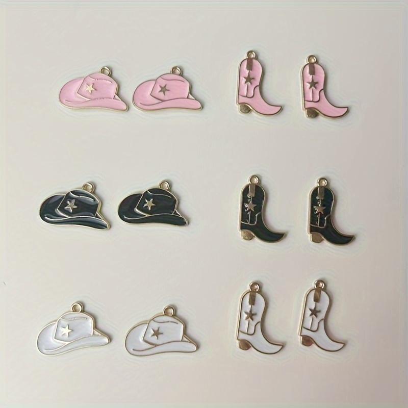 12pcs Alloy Cowboy Boot and Hat Charms for DIY Jewelry Making - Versatile Pendants for Necklaces Bracelets and Earrings.