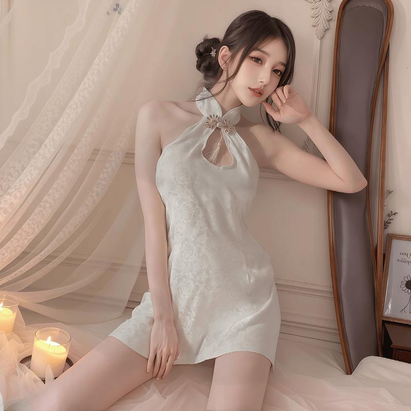 Sex Underwear Sexy Halter High Fork Chinese Cheongsam Hollowed Out Pure Desire Retro Suit Hot Hip-wrapped Passion Uniform
