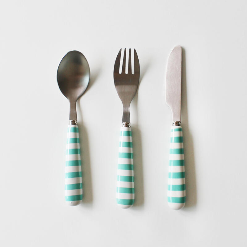 Retro Pattern Dessert Cutlery / Mint Stripe