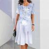 Elevate your summer wardrobe with this stunning maxi dress, crafted from luxurious artificial silk material. The dress features a beautiful 3D floral design that adds a touch of elegance, while the color block palette brings a modern flair. Its short sleeves and round neck provide a classic look, and the cinched waist ensures a flattering fit. Made from soft and breathable milk silk, this dress is perfect for warm weather occasions.