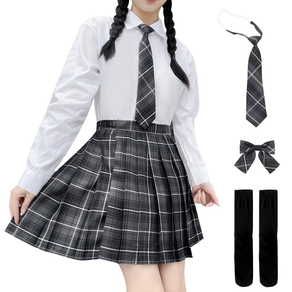 High School Girl Uniform Set with 42cm and Perfect for Amusement and Cultural Festivals [HTPARY] 5-Piece Skirt, Shirt, Tie, Ribbon, Halloween,