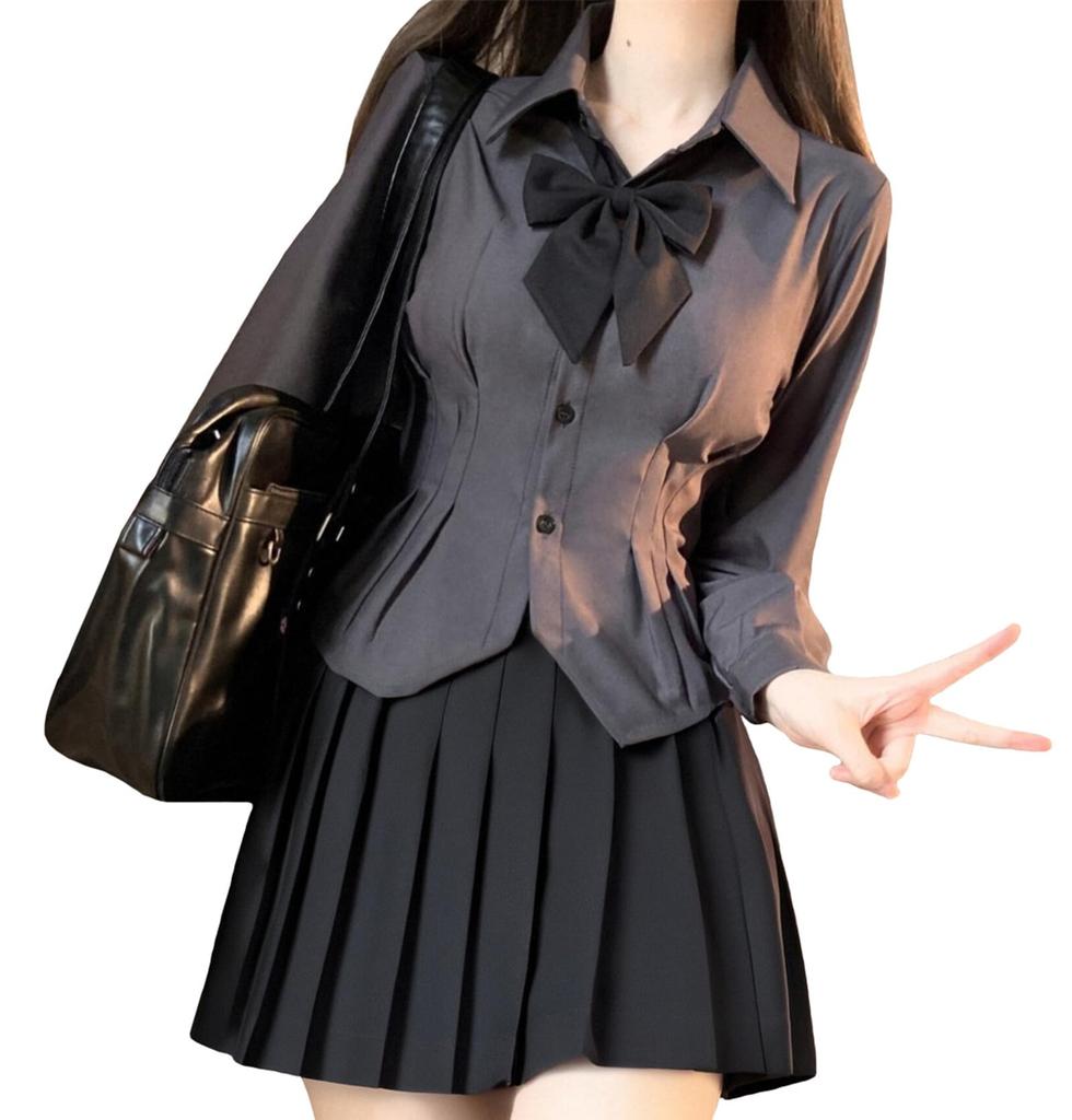 Sivrusn High School Girl Uniform Cosplay Pleated Long Sleeve High Costume for Perfect for Entrance School and Cultural Size S Set, Skirt, Bowknot,