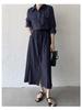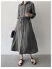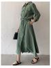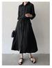 Embrace the elegance of autumn with this stylish women's casual long sleeve drawstring shirt dress. Crafted from lightweight chiffon, this dress offers both comfort and sophistication. Featuring a flattering drawstring waist, it provides an adjustable fit that enhances your silhouette. The addition of convenient pockets adds a touch of practicality without sacrificing style. Perfect for versatile wear, this dress seamlessly transitions from a relaxed daytime look to a chic evening ensemble.
