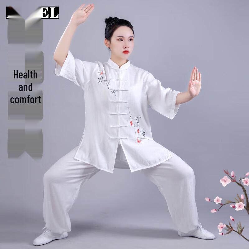 AETEL Women's Loose Fit Cotton Linen Short Sleeve Tai Chi Uniform Set