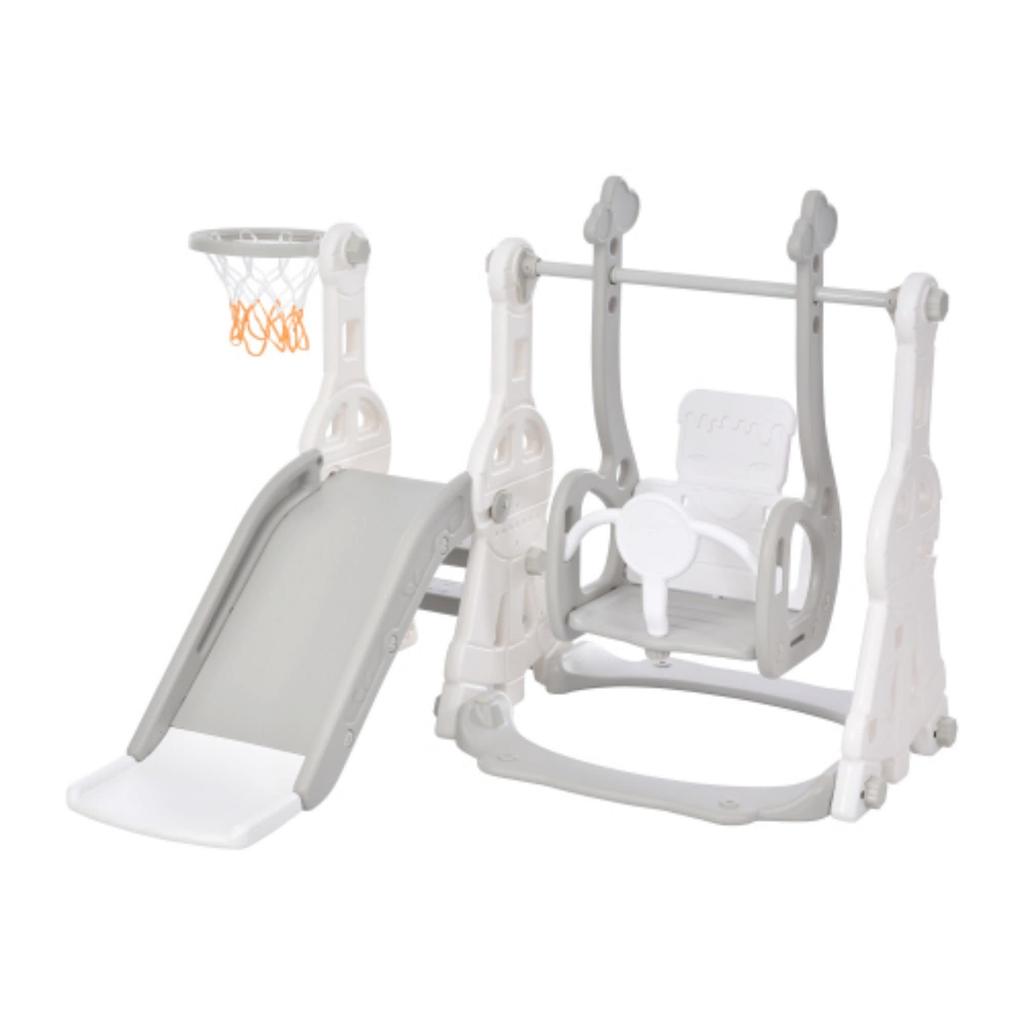 BTM Indoor Slide and Swing for Kids, Includes Basketball Hoop, 3-in-1 Adjustable Slide and Swing, 3-Level Adjustment, Large Playground Equipment for