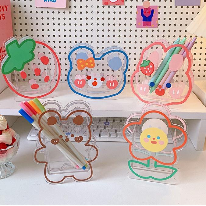Creative Cartoon Student Desktop Pen Holder Soft Cute Bear Rabbit Multifunctional Office Stationery Cosmetics Transparent