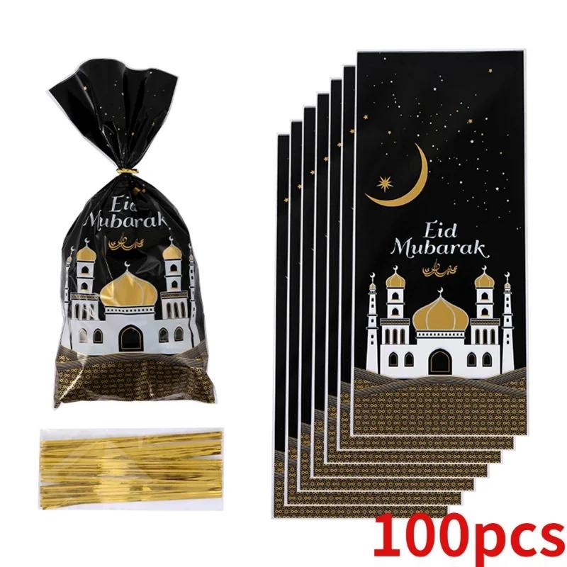 100pcs Mubarak Bags Plastic Cookie Candy Bag Ramadan Kareem Decor Islamic Muslim Party Supplies Eid Al-fitr Decor
