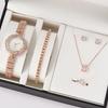 6PCS Set Luxury Watch Women Ring Necklace Earrings Rhinestone Fashion Wristwatch Female Casual Ladies Watches Bracelet Set Clock