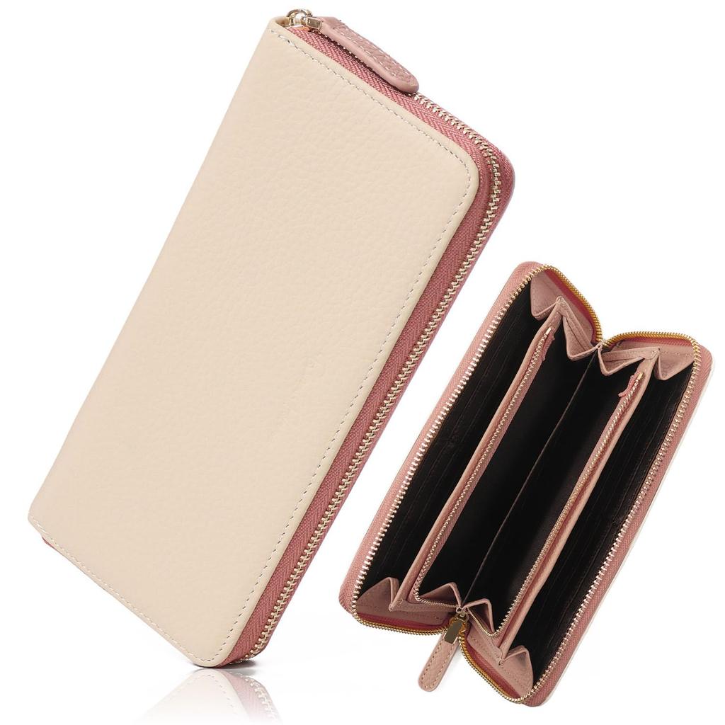 This smart, feminine, and elegant long wallet comes in a modest yet transparent color lineup and features a subtle embossed brand logo that exudes a sense of luxury!