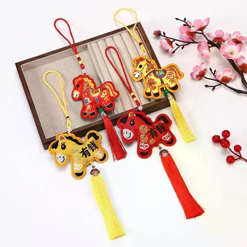 Chinese Zodiac Horse Mascot Pendant Embroidered Lucky Fragrant Bag with Tassels Car Hanging Incense Bag