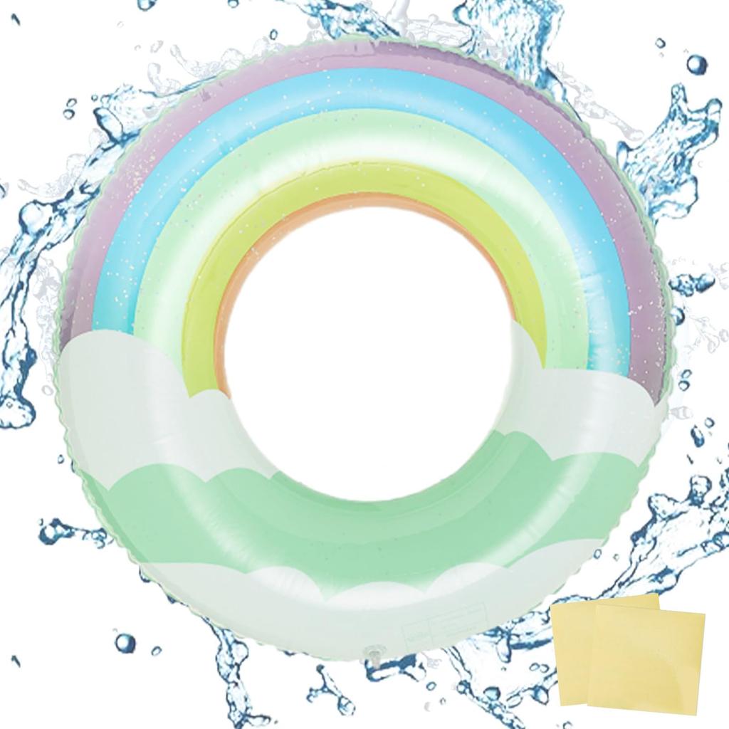 Cute O-shaped Float Ring for Kids and Adults, Includes Two Repair Tapes, Sparkly Design, Stylish, Perfect for Water Play, Summer Vacation, Travel,