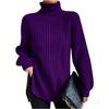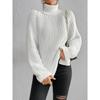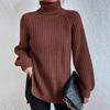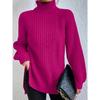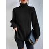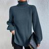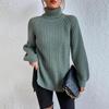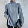 Soft Warm Knitwear Turtleneck Split Sweater Solid Mid Length Pullover Long Sleeve Raglan Casual Fashion Autumn Winter