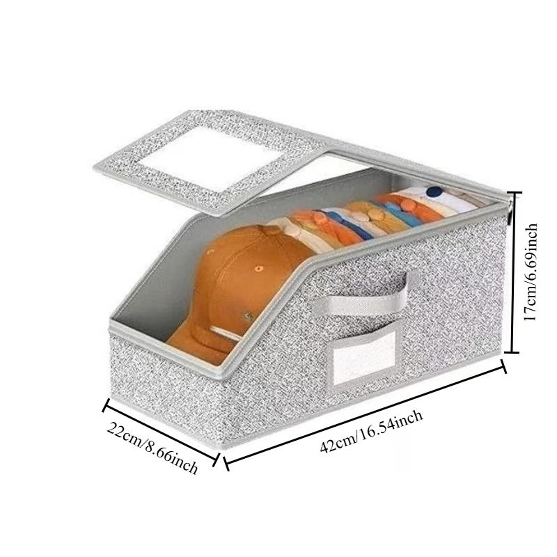 1PC Stackable Baseball Cap Storage Box with Zipper and Lid, Wardrobe Storage Box Suitable for Storing Various Hats, Reusable