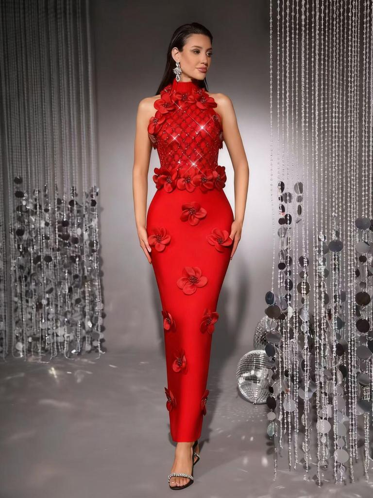 Elegant European and American Evening Gown: Sequined Floral High-End Sleeveless Long Bandage Dress