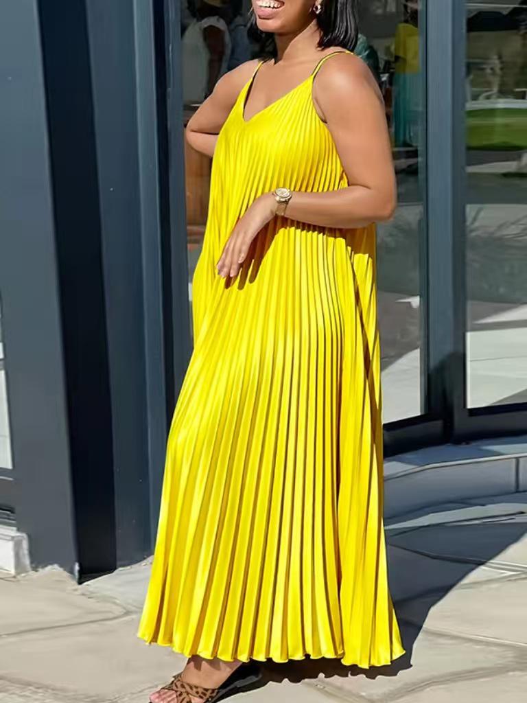 Elevate your summer wardrobe with this charming plus size summer dress, designed to offer both comfort and style. Crafted from soft, breathable polyester, this dress features delicate spaghetti straps and a flattering V-neckline. The pleated design adds a touch of elegance, while the flowing hem creates a graceful silhouette that moves beautifully with every step. Perfect for sunny days and warm evenings, this dress effortlessly combines chic design with everyday practicality.
