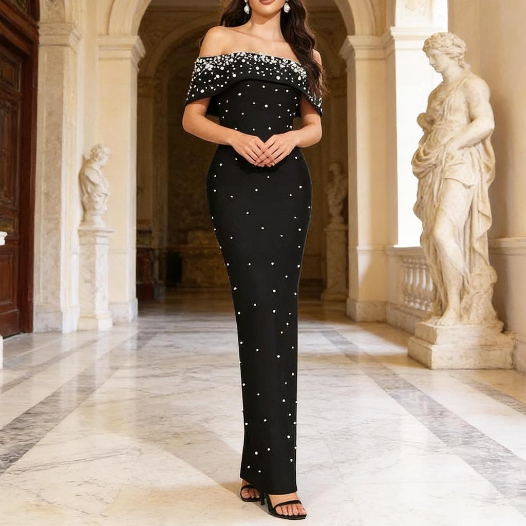 The Cross-Border Women's Sexy One-Shoulder Bandage Evening Dress is an elegant and stylish choice for special occasions. Crafted from high-quality polyester material with a stretch polyester lining, this dress offers both comfort and a flattering fit. Its one-shoulder design and bandage detailing create a sophisticated silhouette, making it an ideal option for formal events or a night out. The figure-hugging cut enhances your natural curves, while the premium materials ensure durability and a smooth, luxurious feel.