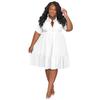 This elegant women's shirt dress offers a chic and versatile option for warm-weather outfits. Crafted from lightweight polyester, the dress features a solid pattern and an imitation tencel feel that ensures comfort and breathability. The unique tailor neckline adds a sophisticated touch, while the half-length sleeves provide a balance between coverage and airy style. Designed with plus sizes in mind, this dress promises a flattering fit for every silhouette, making it a perfect choice for casual outings or semi-formal occasions.