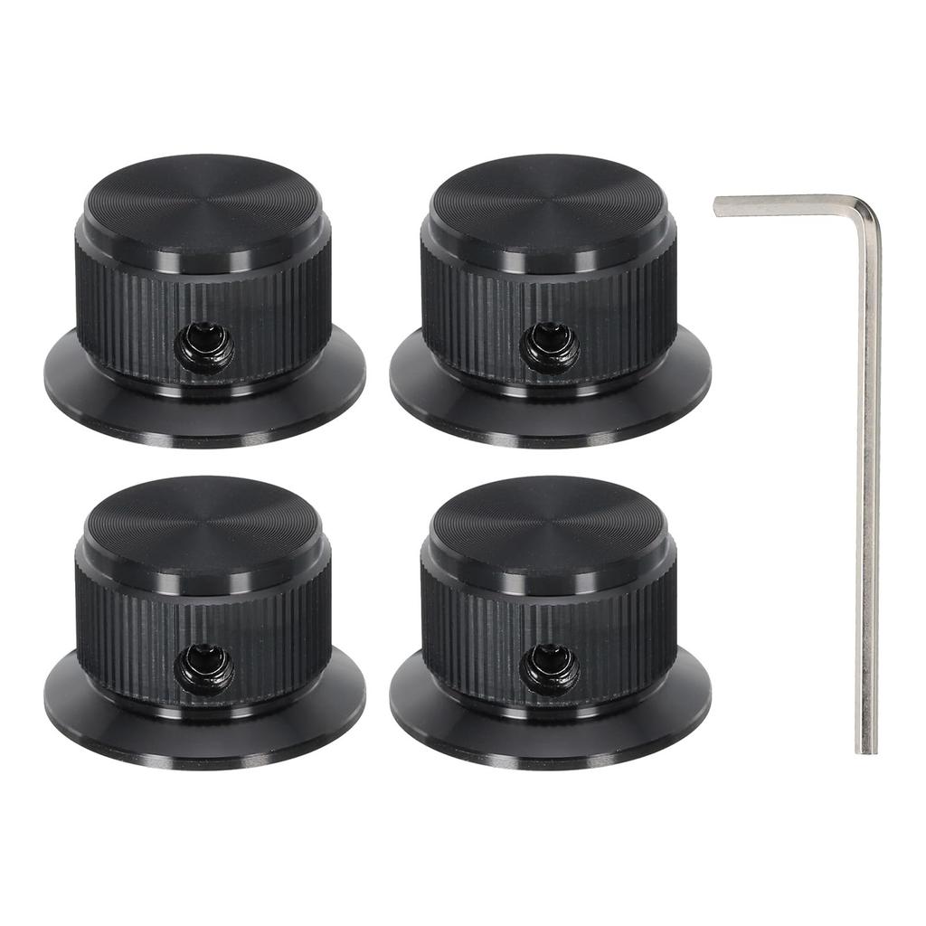 Volume Tone Control Knob Height: 14.5mm; Outer Diameter: 24mm; Inner Diameter: 6mm; Color: Black; Material: Aluminum Alloy; Package Contents: 4 x Guitar Control Knobs (with Unwrench);