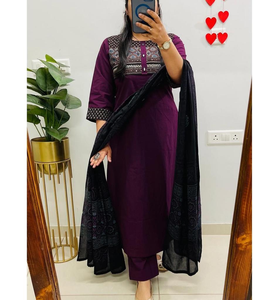 Indian Designer Party Wear Kurta Pant Dupatta Set Women Bollywood Cotton Salwar Suit