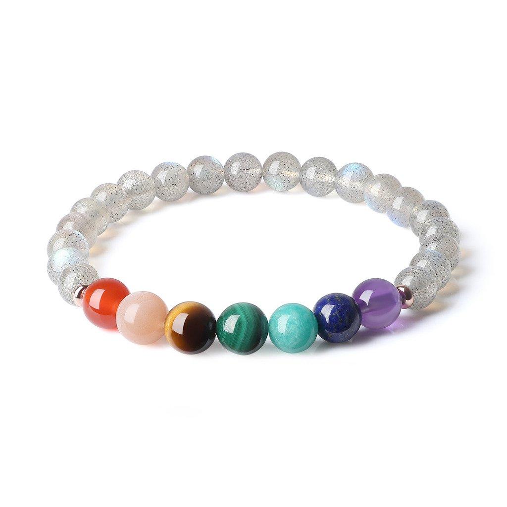 Size: 8mm Labradorite, 8mm Chakra Bead, Arm circumference 16-18cm
