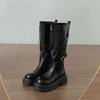 Winter Retro Platform Thick Sole Woman Knee High Top Fashion Belt Buckle Front Zipper Ladies Slim Knight Long Botas