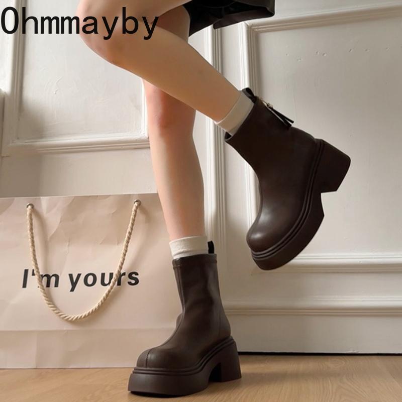 Retro Chunky Heel Women Ankle Fashion Round Toe Zippers Autumn Winter Mordern Short Botines Para Mujeres