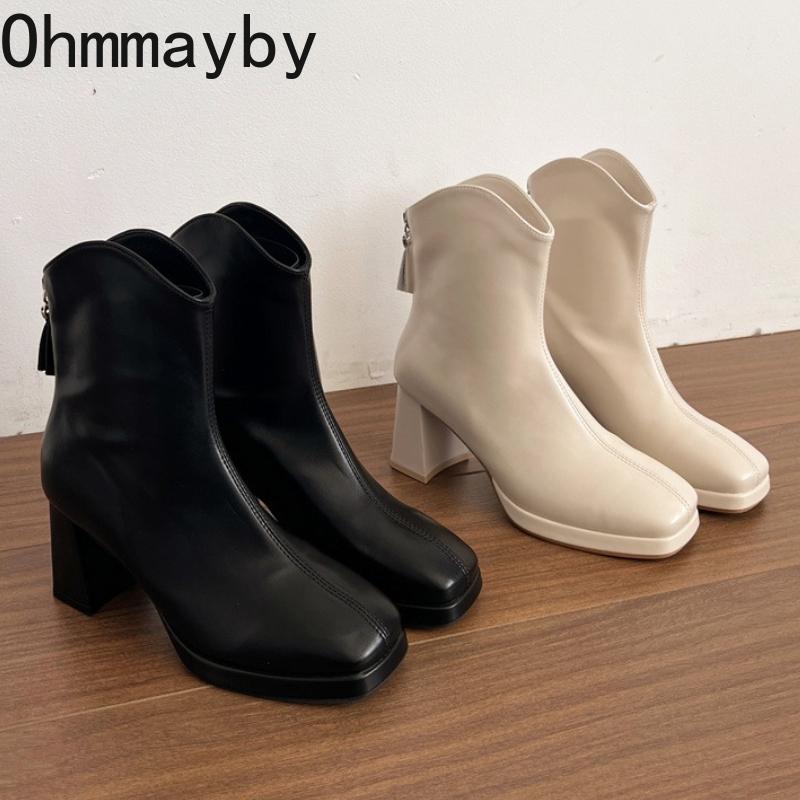 Winter Street Square Toe Women Ankle Thick High Top Heels Female Mordern Short Booties De Muje for Adult Women