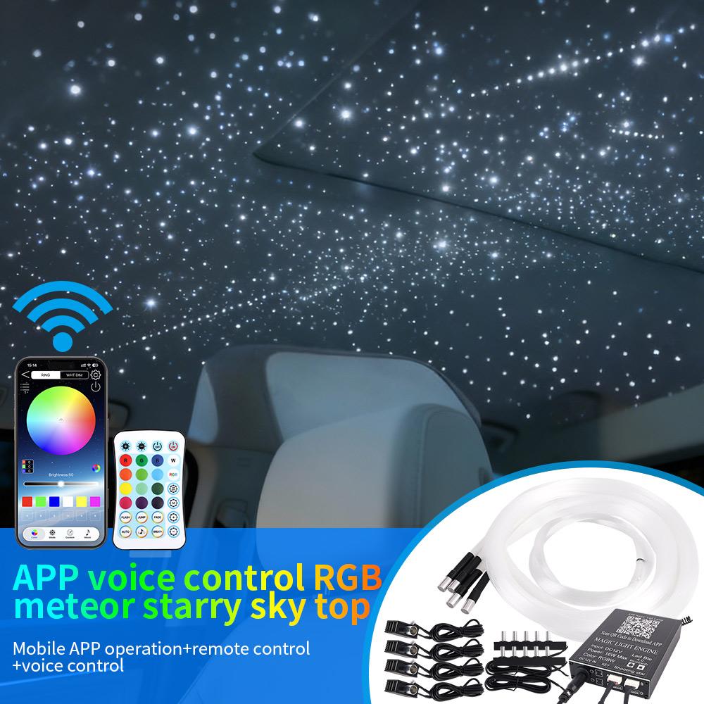 Led Star Roof Starlight Headliner Fiber Optic Lamp APP Voice 16W Twinkle Starry Sky RGB Car Star Ceiling Light Remote Control