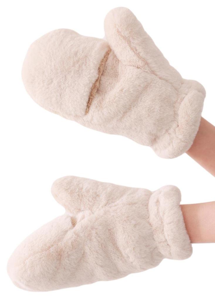 AVEVE 5960 Fluffy, Fleece-Lined Mittens for Women, 2-Way, with Finger Slits for Smartphone Use (Cream)