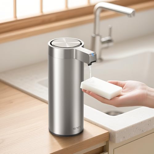 SUNLY Automatic Soap Dispenser, Compatible with Liquid Detergent and Dishwashing Detergent, 3-Level Dispensing, High-Sensitivity Sensor, Quiet Design,