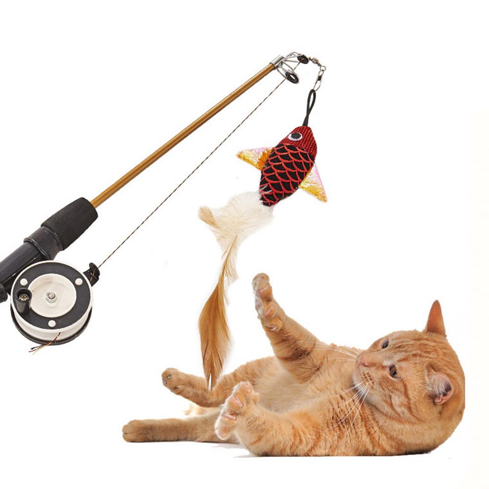 Retractable Cat Toy Fish Type Telescopic Feathers Funny Cat Stick Toys Pet Toy for Kitten Cat Rods Simulation Fishing Rod