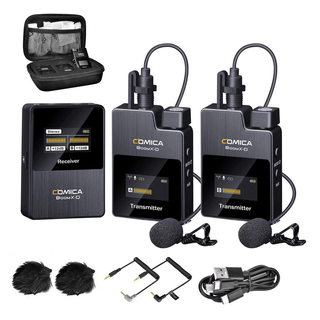 Comica BoomX-D2 Wireless Pin Microphone System, 48KHZ/16-Bit External Microphone, 200M Transmission Range, 2.4G Digital Wireless Microphone, Multi-Fun