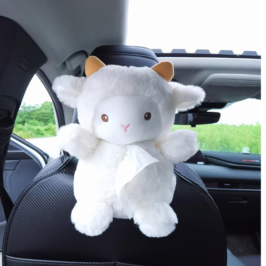 Cartoon Car Tissue Box Creative Little Sheep and Pig Car Hanging Paper Drawer Box Cute Car Interior Supplies Tissue Box