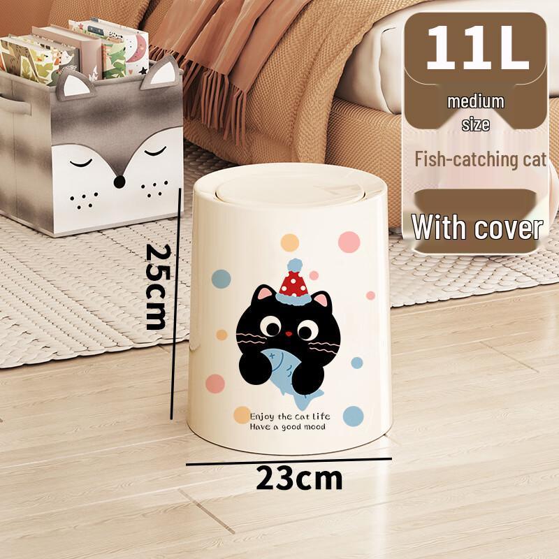 OIMG Double-Layer Trash Can with Lid, Fishing Cat Design, 2-Pack