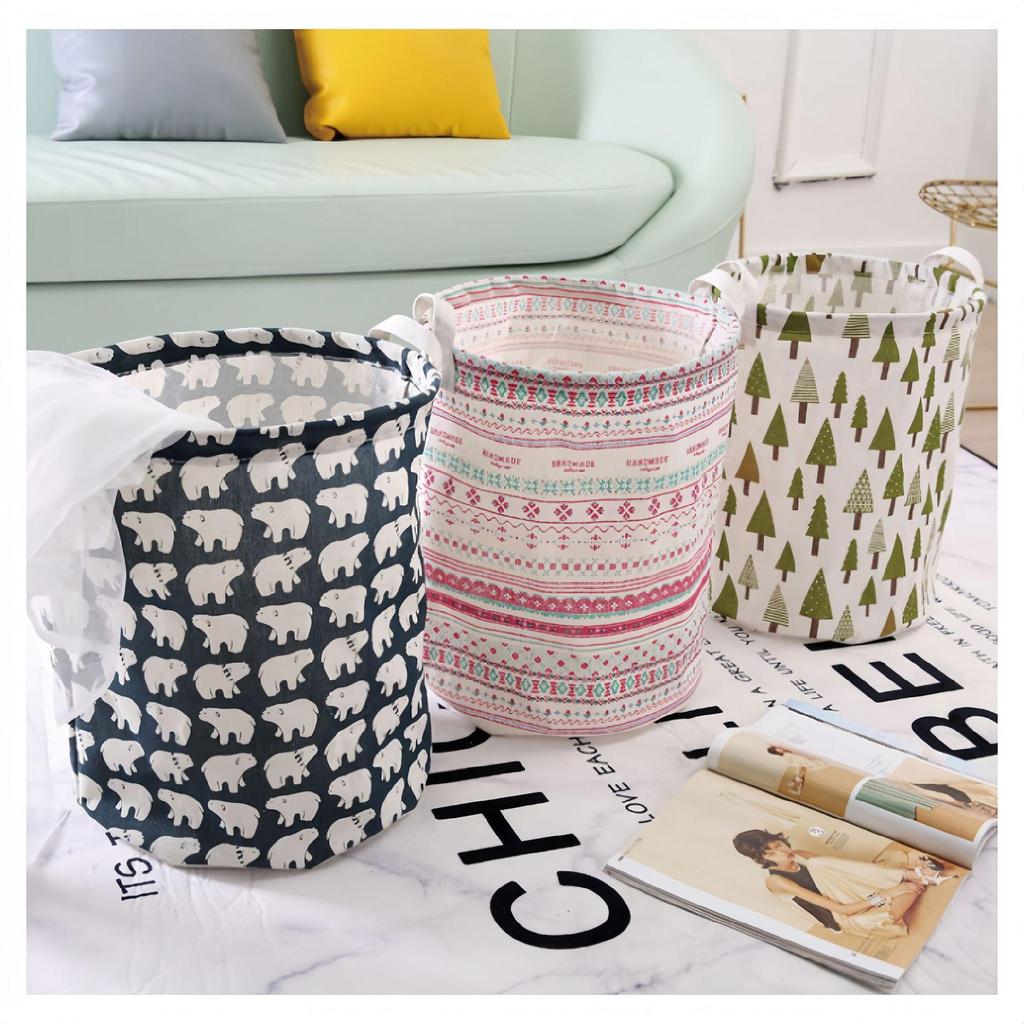 Cotton Linen Round Laundry Hamper – Large Capacity Handheld Storage for Clothes, Toys, and Sundries.