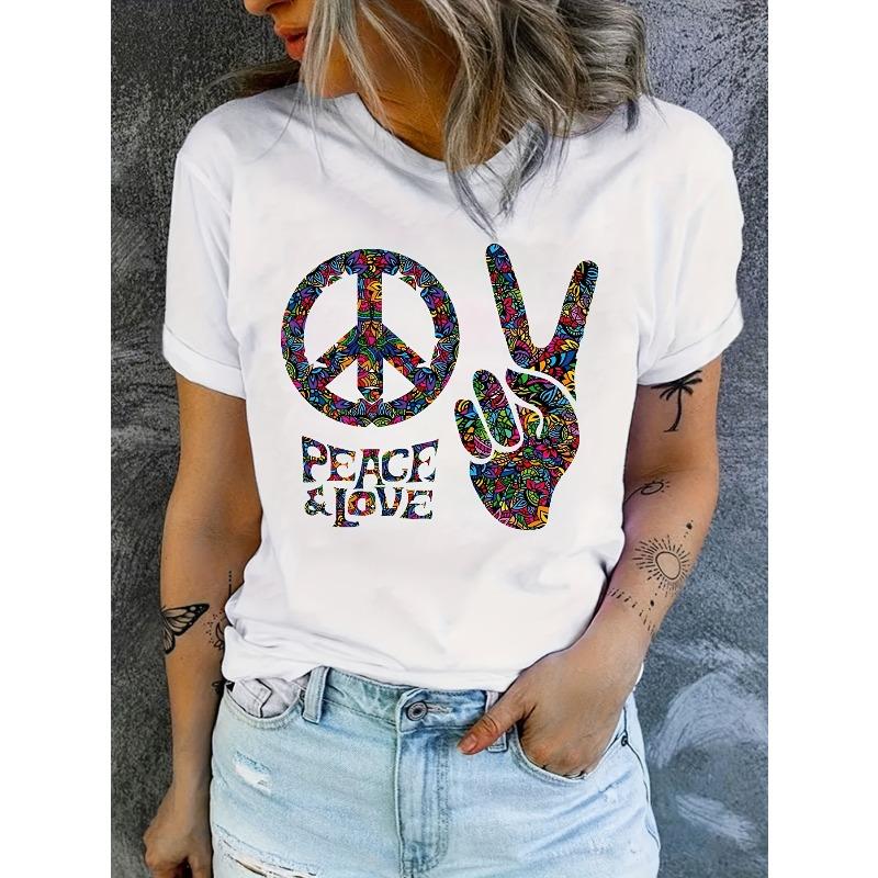European sizesNew Spring And Summer Short-Sleeve T-Shirt for Women with a Hippie Print Design by Teacher Gu