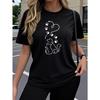 European Size Single-Piece Women'S Short Sleeve T-Shirt | Trendy Art Cat and Dog Print, Breathable High-Stretch Crew Neck