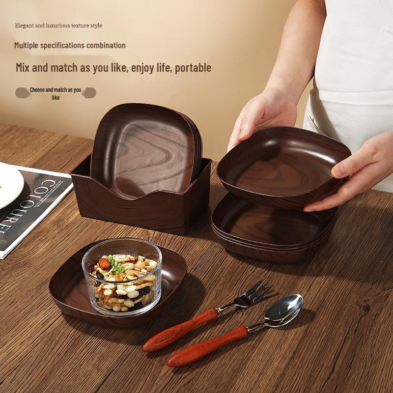 Retro Faux Wood Grain Multi-Compartment Snack Dish for Melon Seeds and Dried Fruits