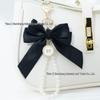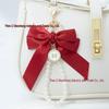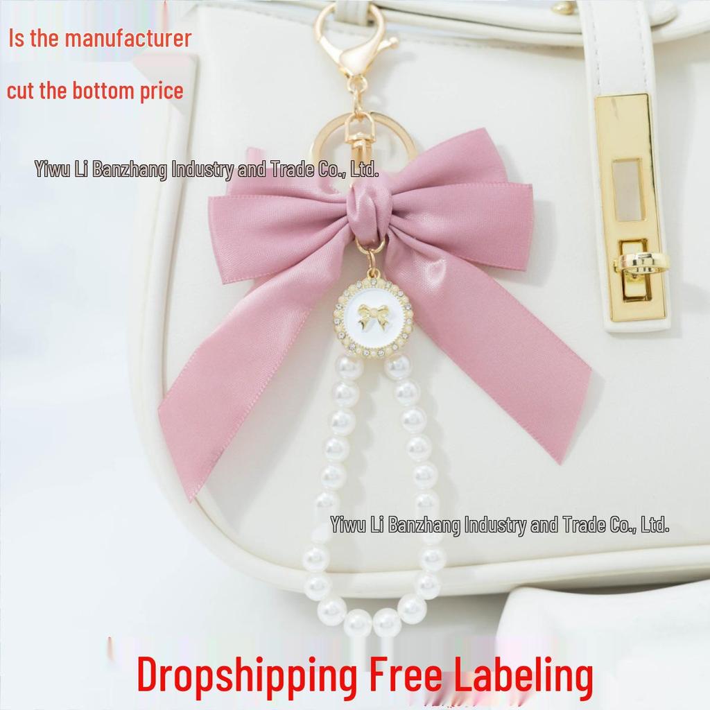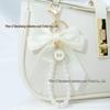 Large Bow Faux Pearl Bracelet Keychain with Colored Woven Strap and Alloy Tag Pendant