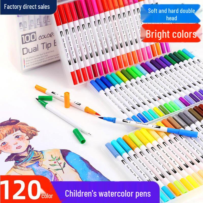 Washable Water-based Double-headed Watercolor Pens for Children - Soft-tip Markers and Brush Set
