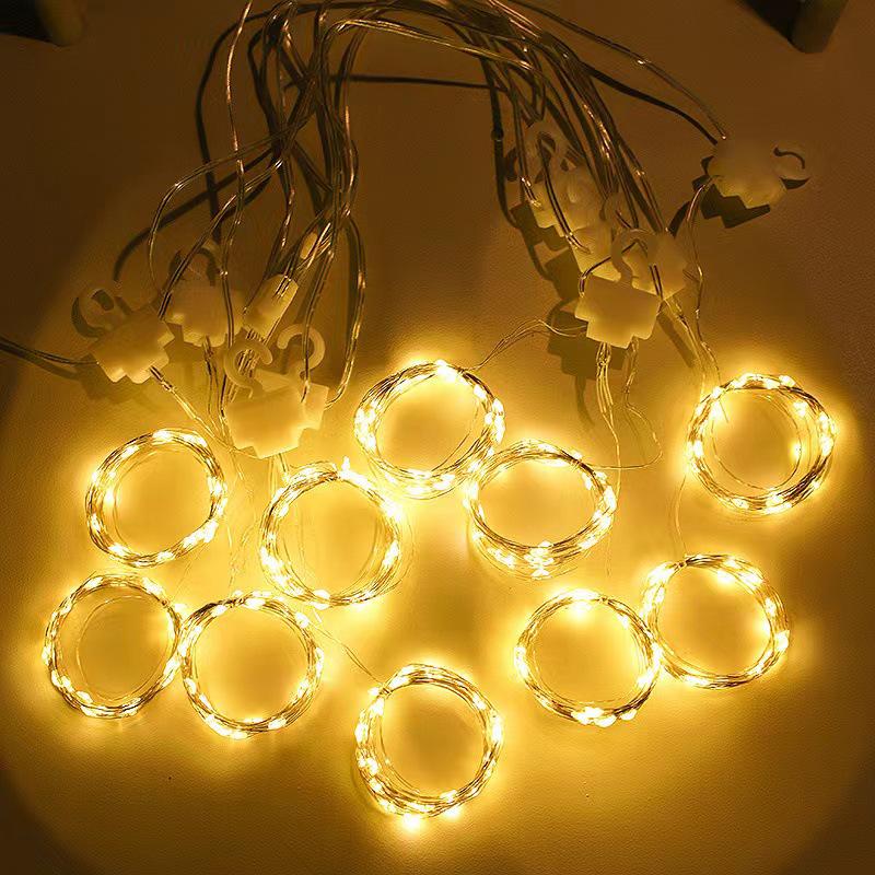 3x3 Copper Wire LED Curtain Lights with USB Remote - Eight Function Icicle Lights for Christmas Decoration