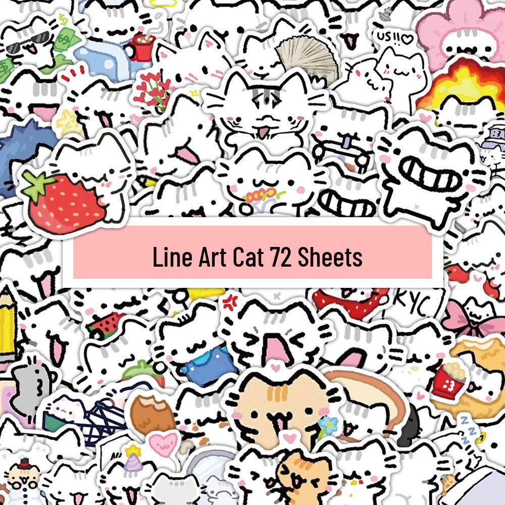 72 Cute Kitten Line Art Stickers: Cartoon Decorations for Phone Case & Laptop - Waterproof
