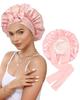 Women's Double-Layer Elastic Satin Sleep Cap - Wide Brim Hair Protection with Bow Ribbon