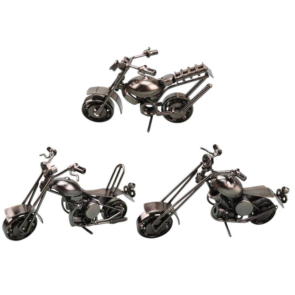 Clove Cube: Set of 3 Iron Motorcycle Figurines, Retro Miniature Ornaments, Stylish Entryway Decorations (SOUL BLACK)