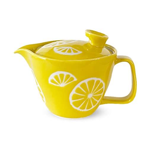 J-kitchens Teapot with Strainer, 240ml Capacity, for 1-2 People, Hasami Ware, Made In Japan, Lemon Pot, Small, Yellow