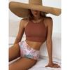Elevate your beach style with this eye-catching high-waisted split bikini swimwear for women, designed for the modern and confident female. Featuring a striking striped pattern, this bikini combines a trendy high-waisted cut with a daring split design, perfect for flaunting your figure. Crafted from comfortable and durable polyester, it ensures both style and support, making it an ideal choice for lounging by the pool or splashing in the waves. Whether you're sunbathing or taking a dip, this bikini promises to make a statement.