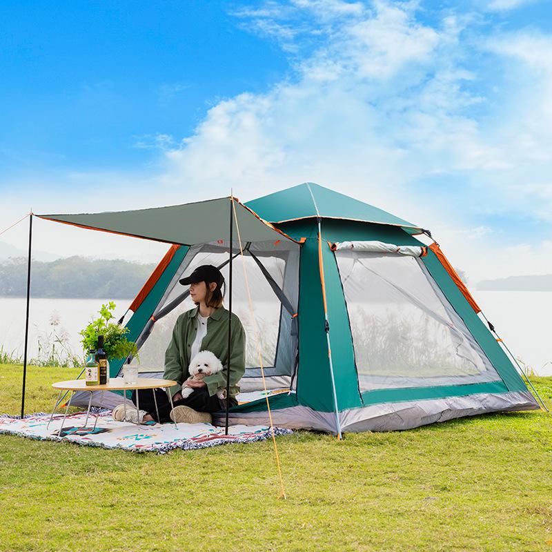 Quick-Open 3-4 Person Portable Camping Tent with Sunshade - Fully Automatic and No Assembly Required