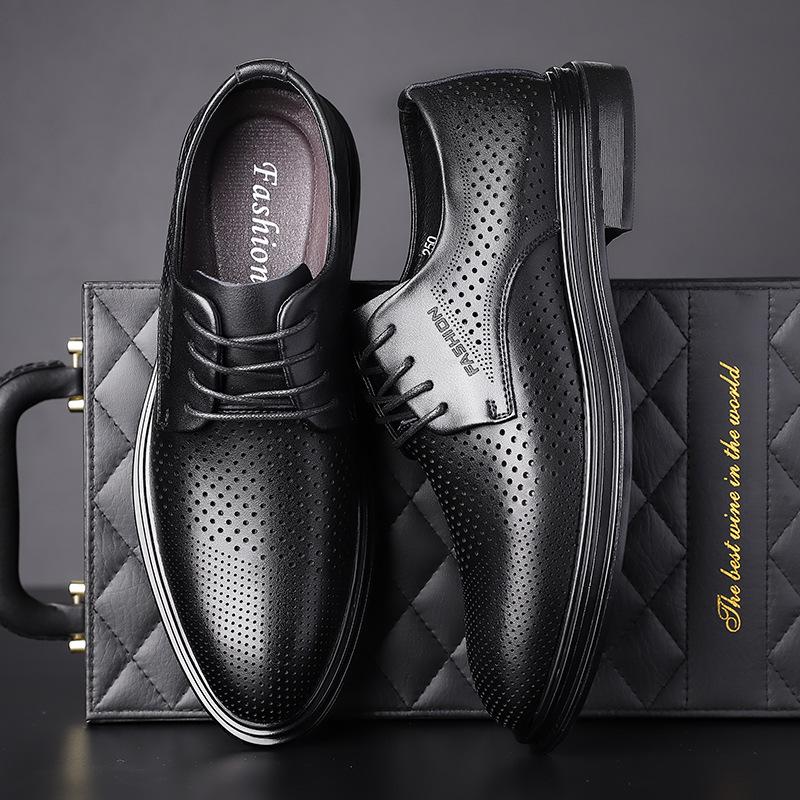 Hollow Leather Shoes Men's Summer Business Dress Men's Shoes Leather Breathable Men's Leather Sandals Lace-up Hole Sandals