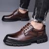 Men's Leather Shoes Spring and Autumn Platform Casual Derby Shoes Men's Formal Wedding Black Low Top Martin Boots
